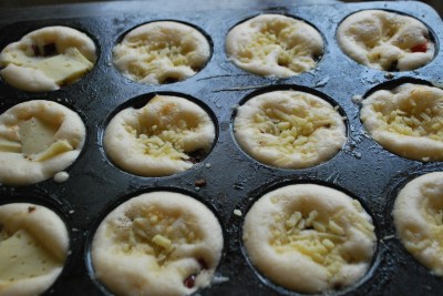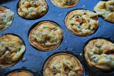 Now you are ready to assemble your egg muffins. I buttered my muffin tin really well but they still got stuck a little bit. If you have good muffins liners, use those. I can’t seem to find any that do not get stuck on the muffin.