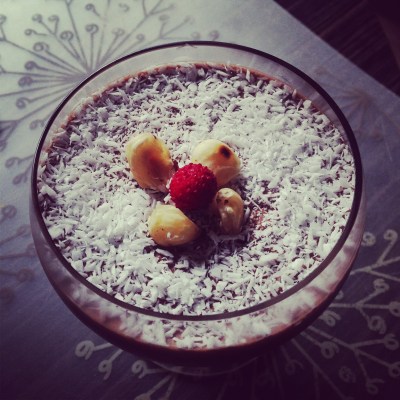 This chocolate coconut panna cotta a great low carb dessert which is also simple to make. Panna cotta in Italian actually means cooked cream but this recipe doesn’t require cooking or cream. But here it is! Makes 5 servings.