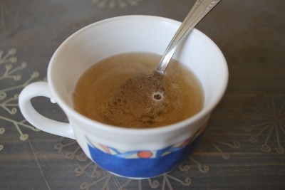 Now it’s time to melt the gelatine. I microwave it for a minute or two and stir while melting. It has to have to lumps, it needs to be all liquid. Start adding it in teaspoon at a time because it is hot and could ruin your panna cottas if added in all at once. Whisk well after adding each teaspoon of gelatine.