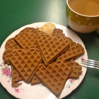 protein waffles (from 2 eggs, a scoop of protein powder, water, 2 teaspoons of cream and dark cocoa powder, fried with some oil)