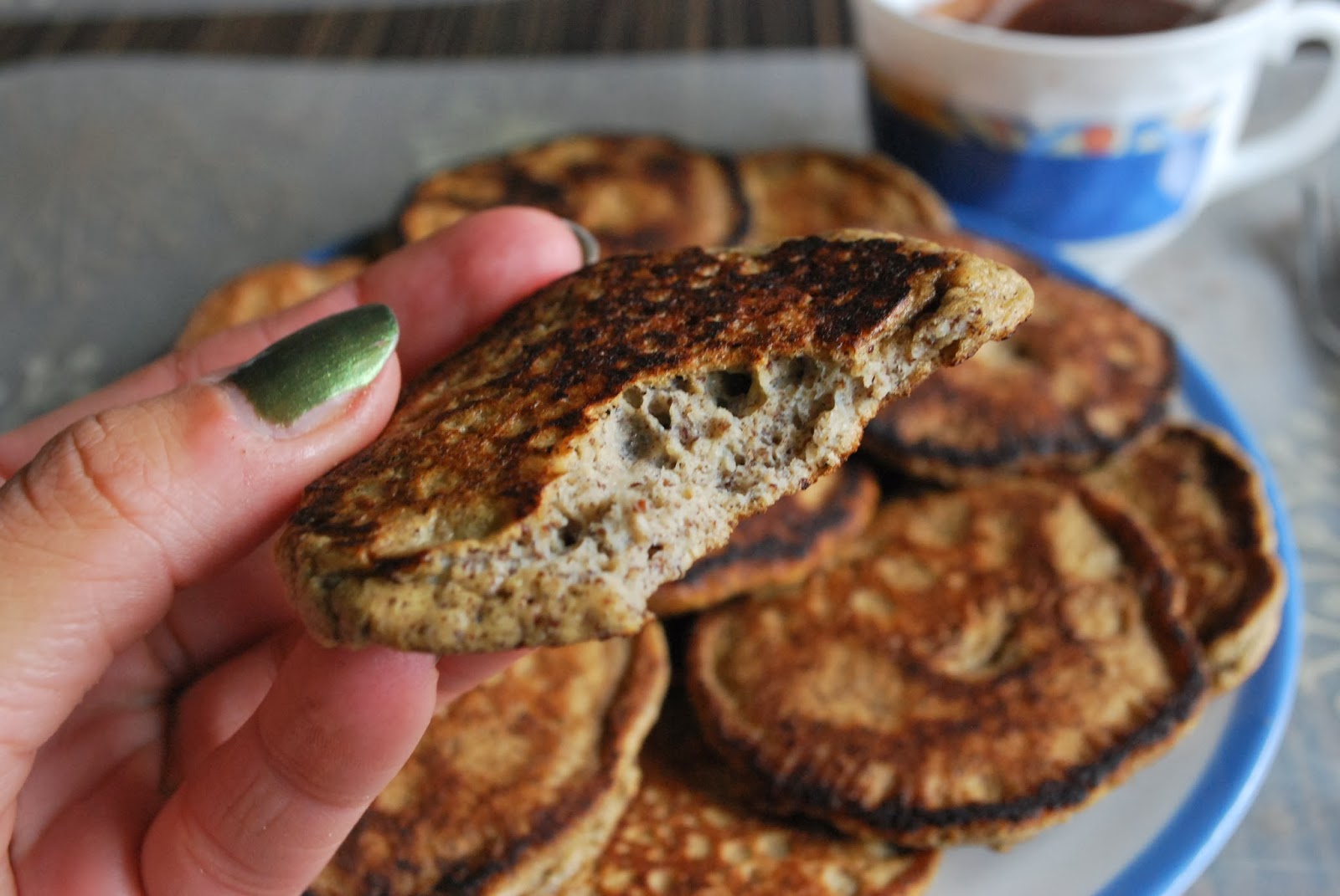 Whisk your eggs until lightly foamy. Now add in sweetener and vanilla, mix well. Add almond and flax seed flour and baking soda, mix really well. Set the batter aside for about 5 minutes at let it thicken since the flours will tie some of the moisture from the egg.