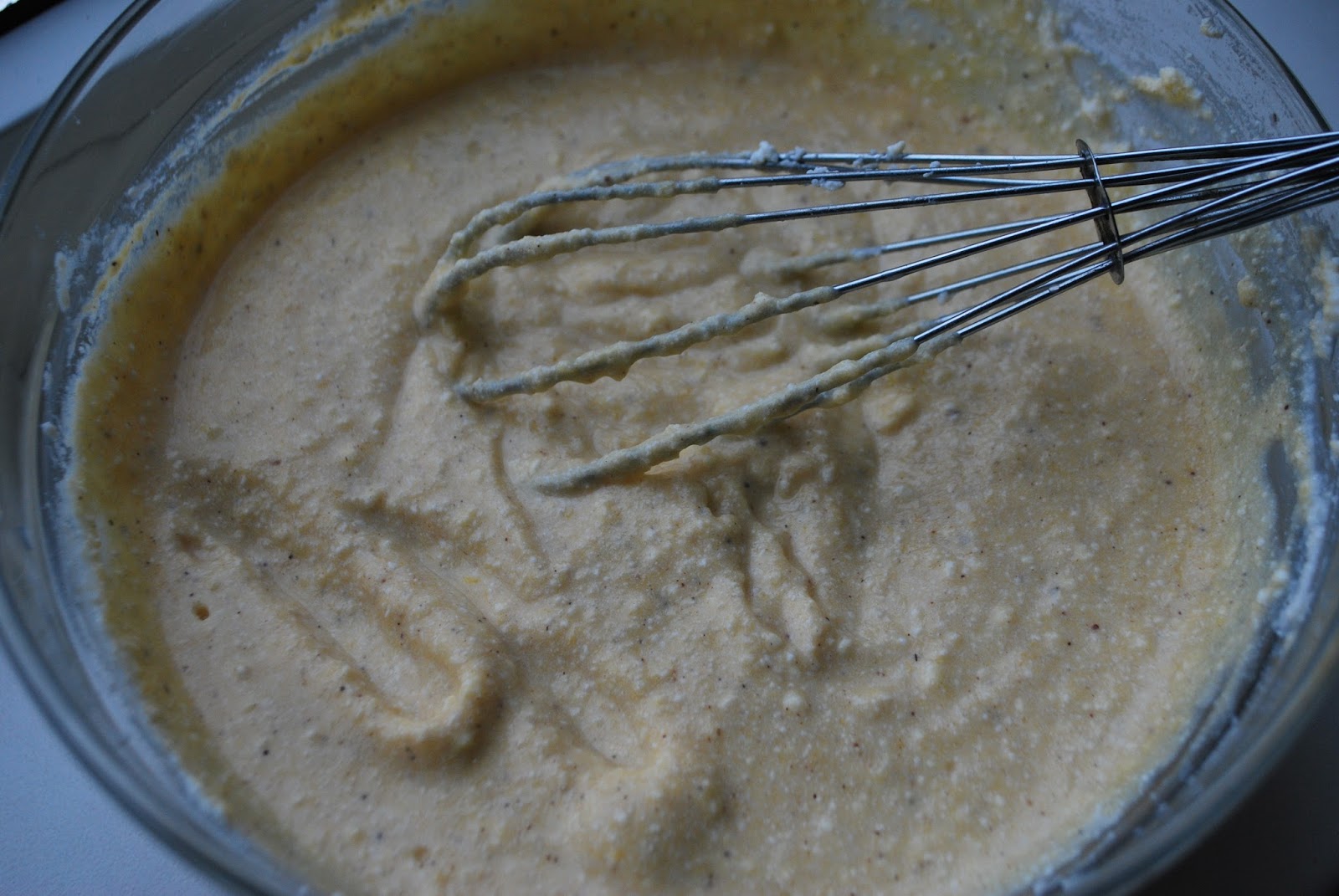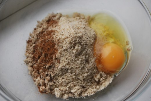 Then add the egg, spice (optional) and sweetener. Then you have a batter that looks like this: