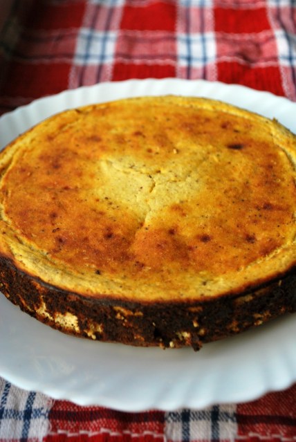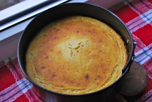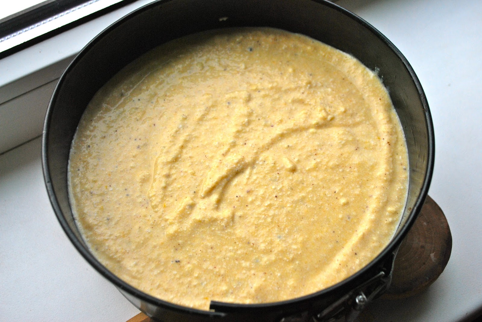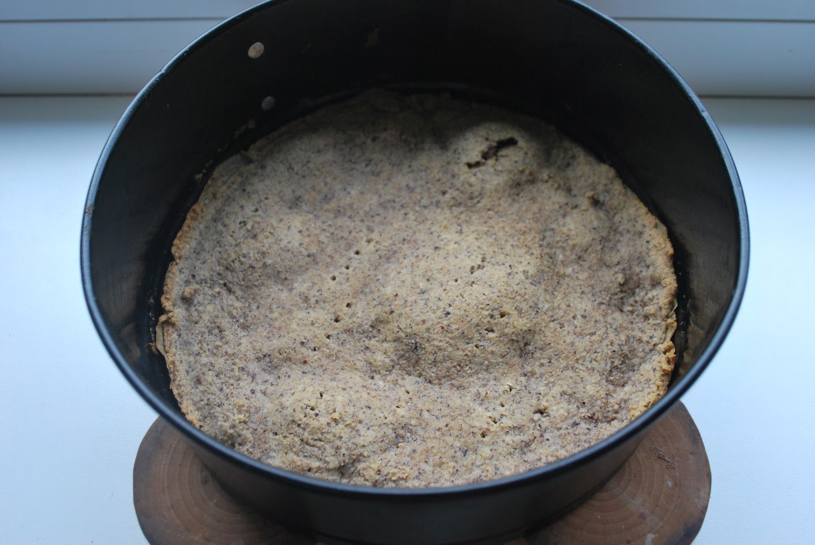 Taste the filling and add some more sweetener if needed. Pour the filling on top of the prebaked base and put your cake in the 180 degree oven. It depends on the size of the pan. If you have a 26–28 cm pan, 45 minutes might be enough. 20–22 cm would require about an hour I assume. Since my pan was really little and the filling layer was really thick, I baked mine for an hour and 15 minutes. Keep checking it after every 15 minutes or so.