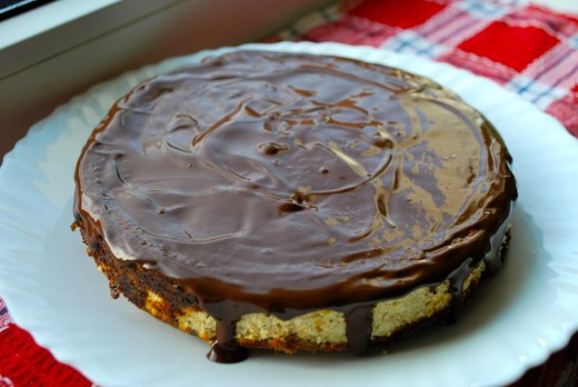 Now your cake is ready. Let it cool completely in the pan (don’t remove the outer round!) and then put it into the fridge. The longer, the better (mine was in there overnight). Before serving and decorating remove the outer round. I also removed the bottom of the pan, I had wax paper on the bottom and the cake didn’t fall apart. But you can totally leave the bottom of the pan there.