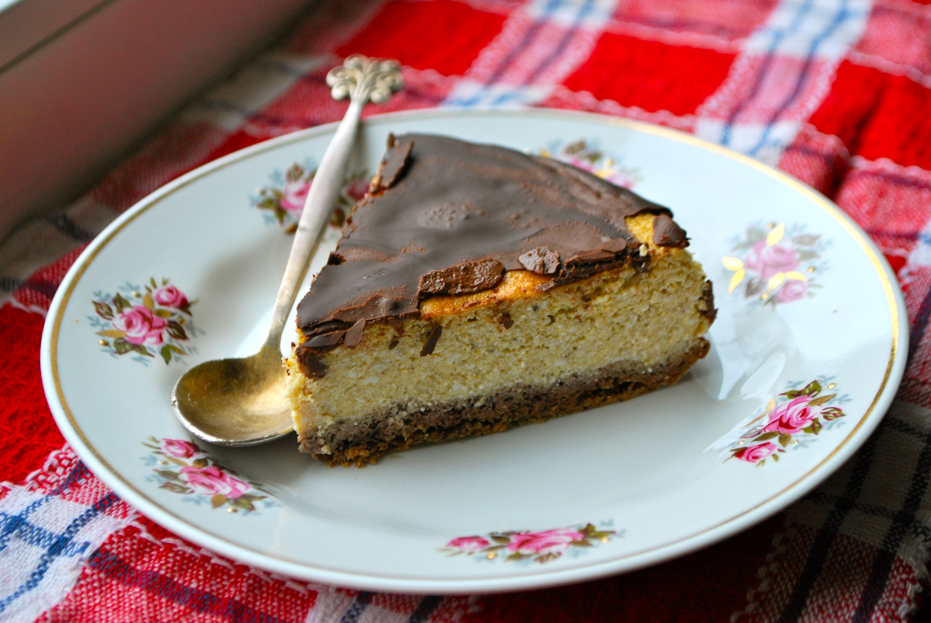 The nutrition really depends on how much nuts you add to the base and what kind of chocolate and ricotta you use. It’s definitely possible to make the cake with less fat if that’s what you want, for example by using fat-free quark (rasvatu kohupiim) instead of ricotta and skipping the chocolate.