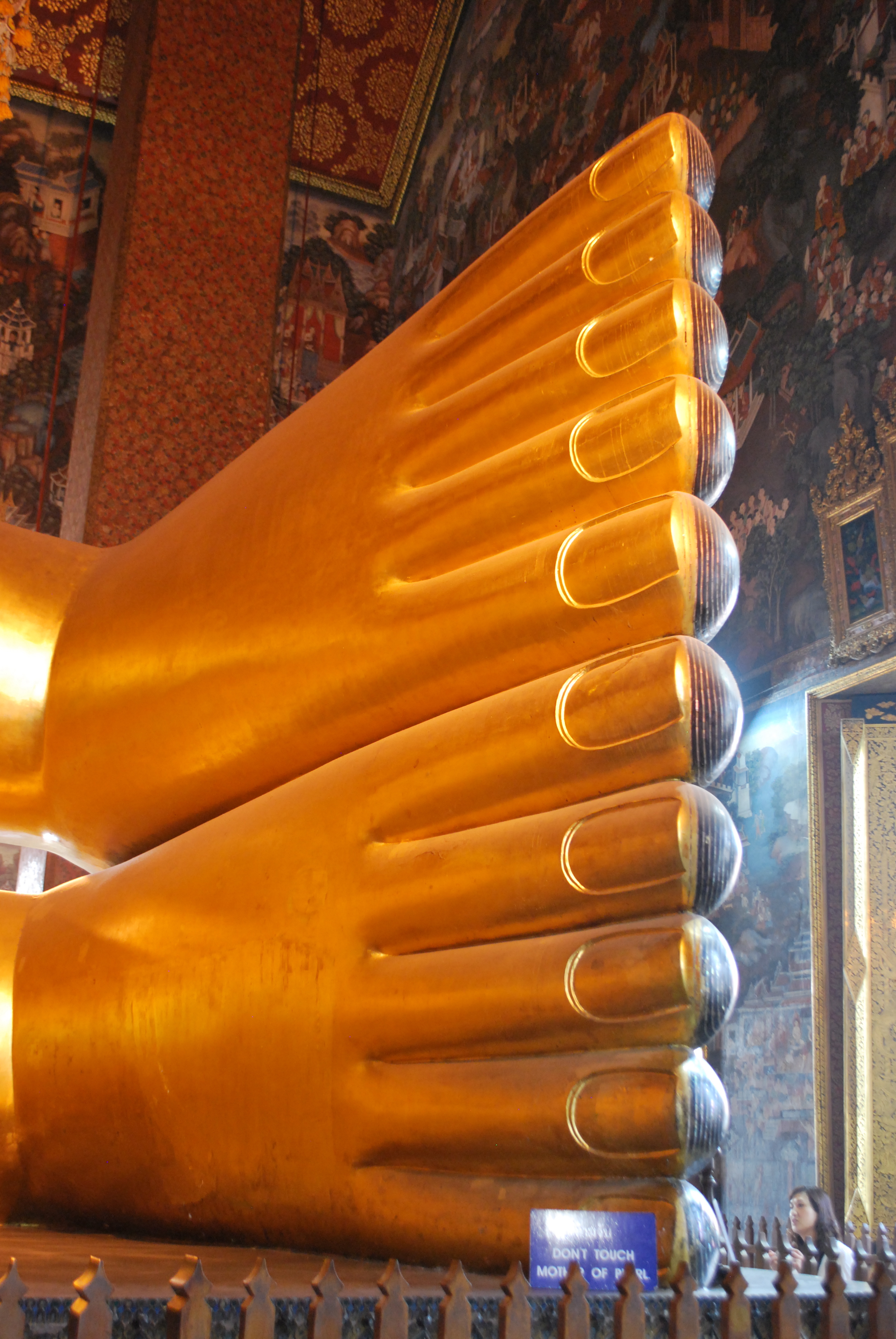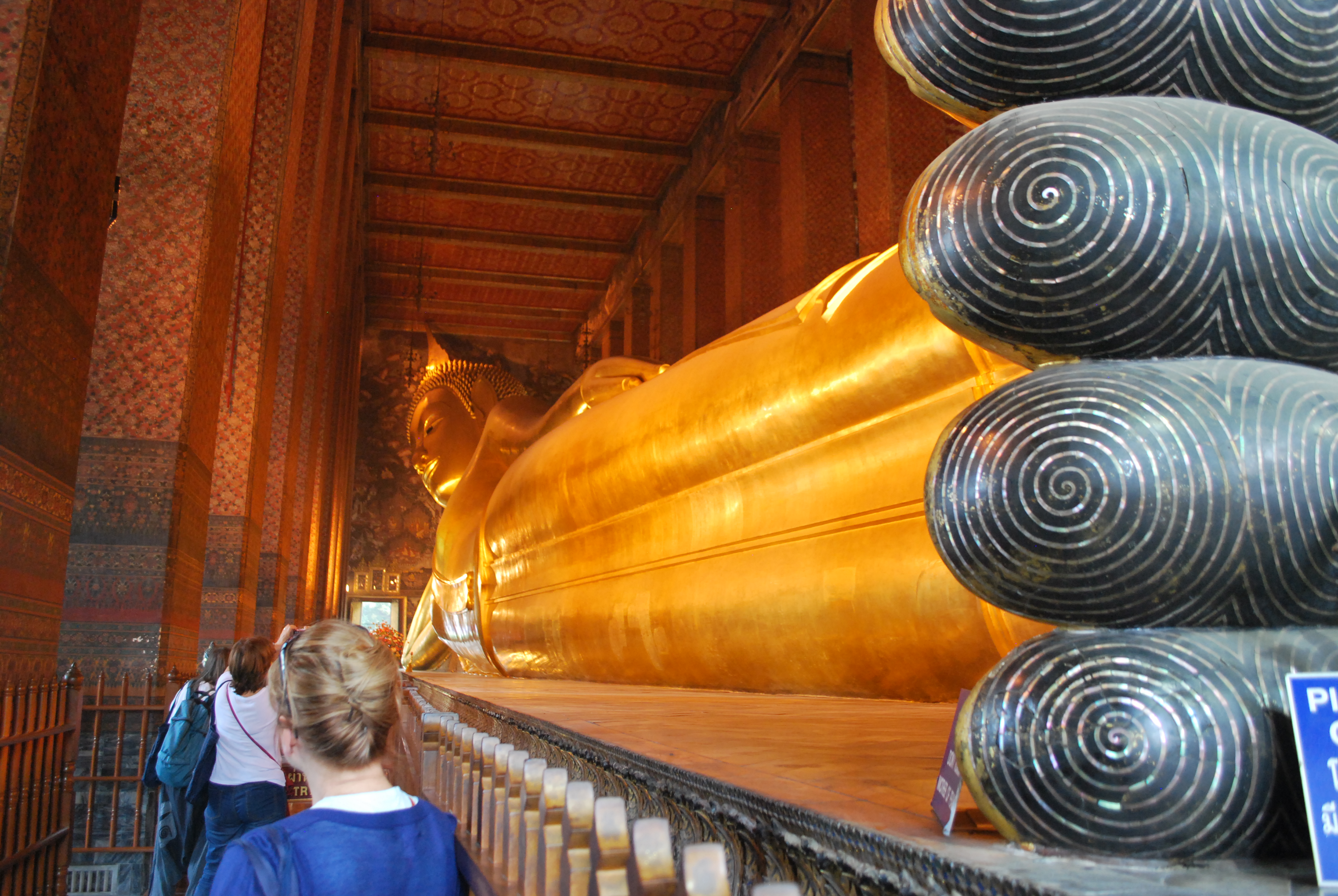 After walking for some time we arrived at Wat Pho. Wat Pho is a huge golden Buddha with a pretty large complex of other building surrounding it. They even offered free drinking water and wi-fi. The Buddha of course was something unique. The size is just unimaginable.