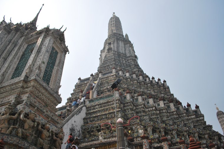 After leaving Wat Pho we headed to the port to cross the river to see Wat Arun: the Temple of the Dawn. We had some time until the boat left so we grabbed a quick lunch: fried tofu (which tasted like nothing really) and some fried rice with chicken. I had mastered the art of eating with chopsticks.