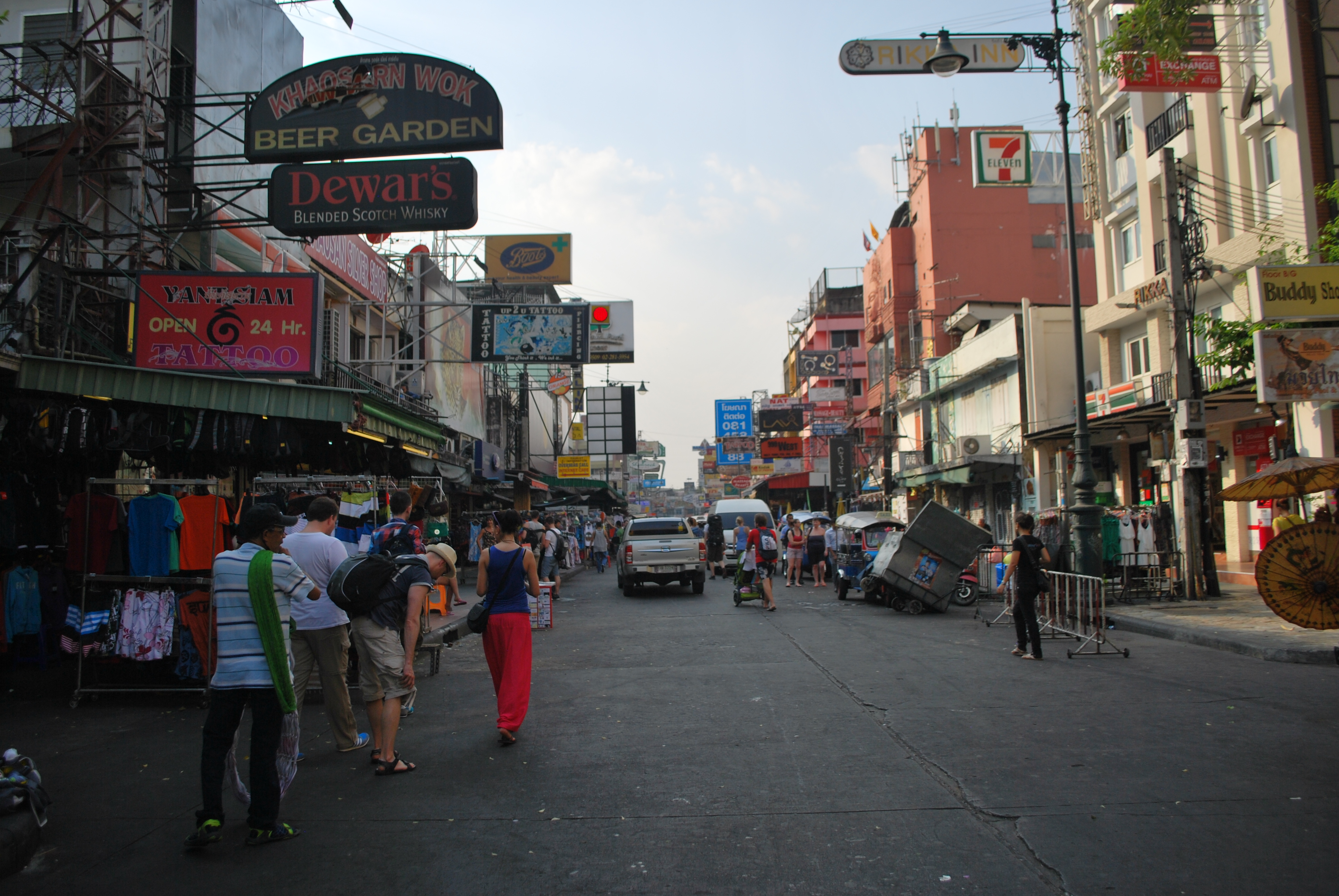 We arrived on Ratchdamnoen Avenue around 5.30 AM on the 27th of January. Somehow we just walked behind other people from our bus and in 2 minutes ended up on Khao San. That worked very well for us 🙂