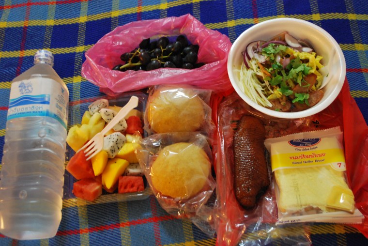 Around midnight the nightbus arrived in our last stop before Bangkok. It was the same stop where we were when we were on our way to Koh Tao. We ate some chicken curry with rice and it was spicy. We also bought some bananas and Oreos… I know, I know, Oreos have nothing to do with Thai cuisine but we wanted to try them. I also got a huge cultural shock there: an Indian family of around 10 people was eating with their hands only. Just taking curry sauce with rice in their hands and putting it in their mouth: this was unseen to my eyes!