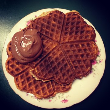 This is NOT a crispy waffle, it’s more like a pancake: soft and cakey. It is dairy-free, grain-free, gluten-free and added sugars free, so thoroughly healthy and suited for all tastes. The recipe makes two big waffles, so it might be even enough for 2 servings, depending on your hunger level. 🙂