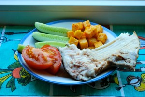 Täna olen olnud natuke tõbine, kõht on vahelduva eduga alates pärastlõunast valutanud ja õhtul lisandus veel ka iiveldus. Üritasin ikka natuke täna süüa ka, kui end natuke paremini tundsin. Loodan homseks ikka enam-vähem terveks saada, kuna lubasin ühel sünnipäeval osaleda.