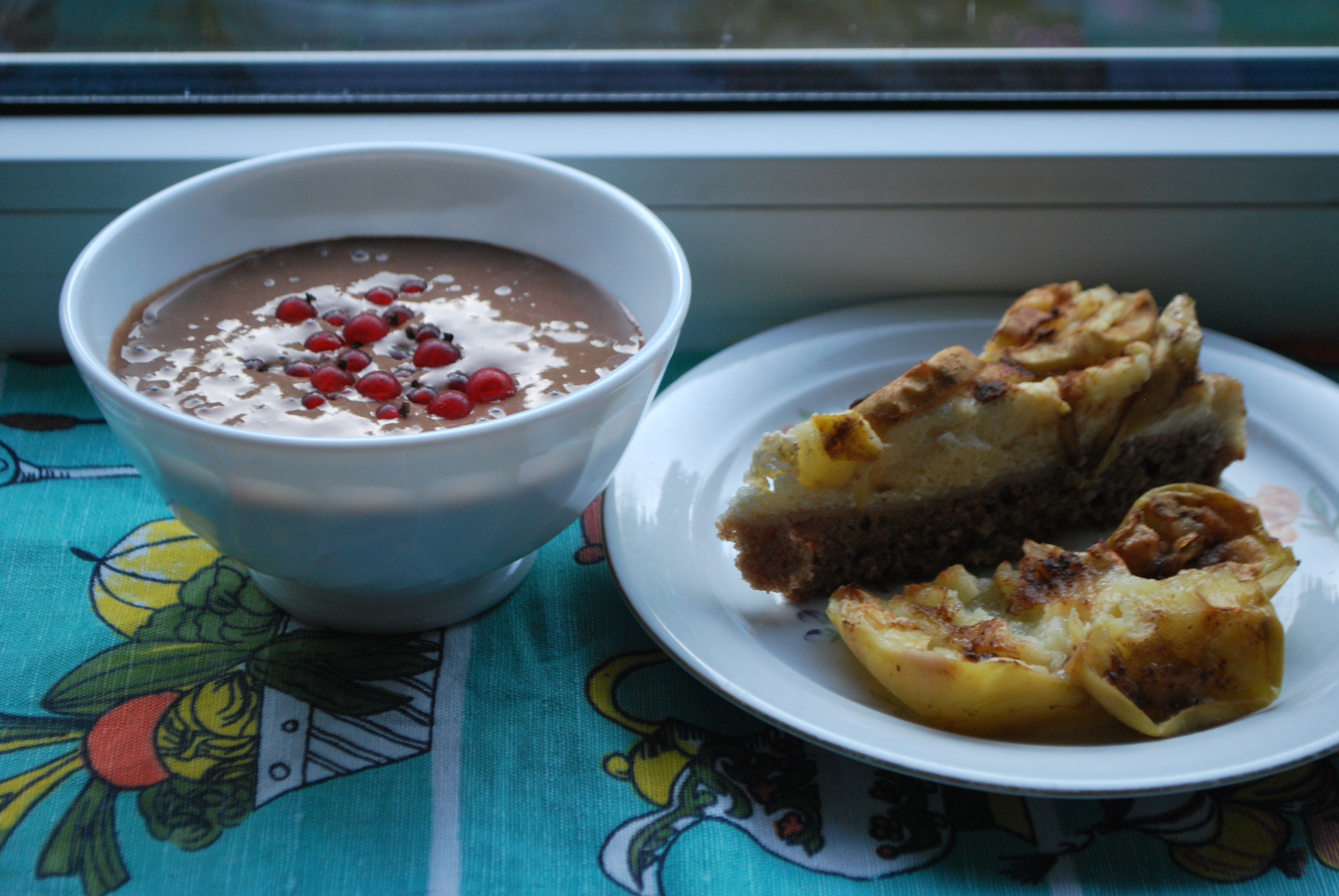 Kui rattaringilt koju saabusin, oli ema jälle katsetanud tatrajahuga ning valminud oli imeline õunakook esimestest kodustest õuntest. No ma pidin seda sööma! 🙂