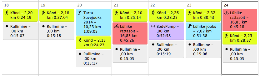 #100blogipäeva 68/100 – Workout Week 18.–24.08.2014
