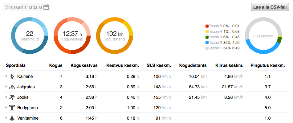 Kokkuvõte rakendusega Sportlyzer. Pulsitsoonid on õiged.