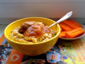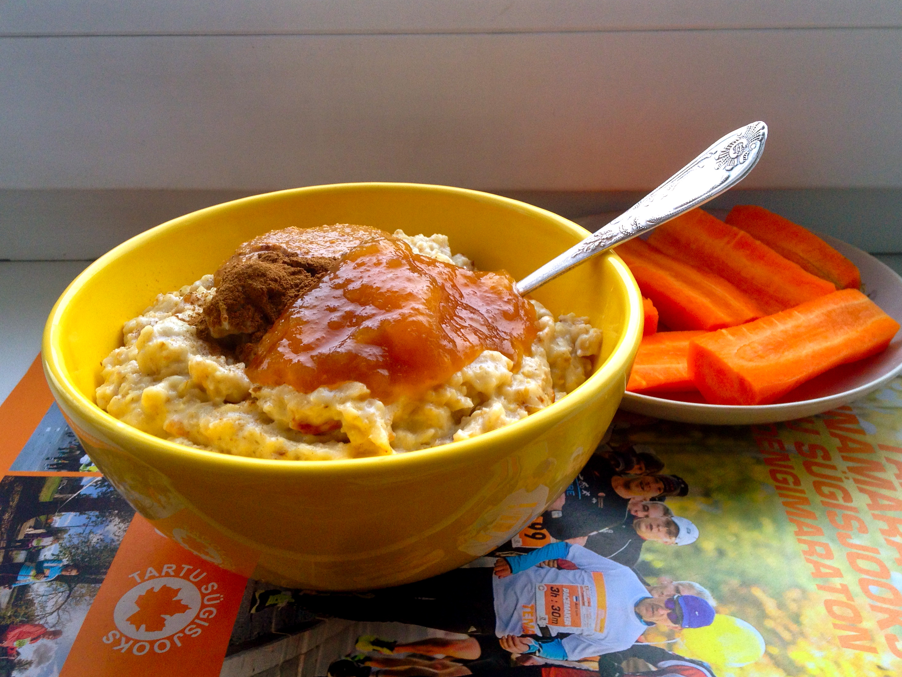 Enne trenni sõin ära ühe suure porgandi suure lusikatäie pähklivõiga, et toidukordade vahe liiga pikaks ei läheks ja trennis ikka jõudu ka oleks. Oli küll! 🙂