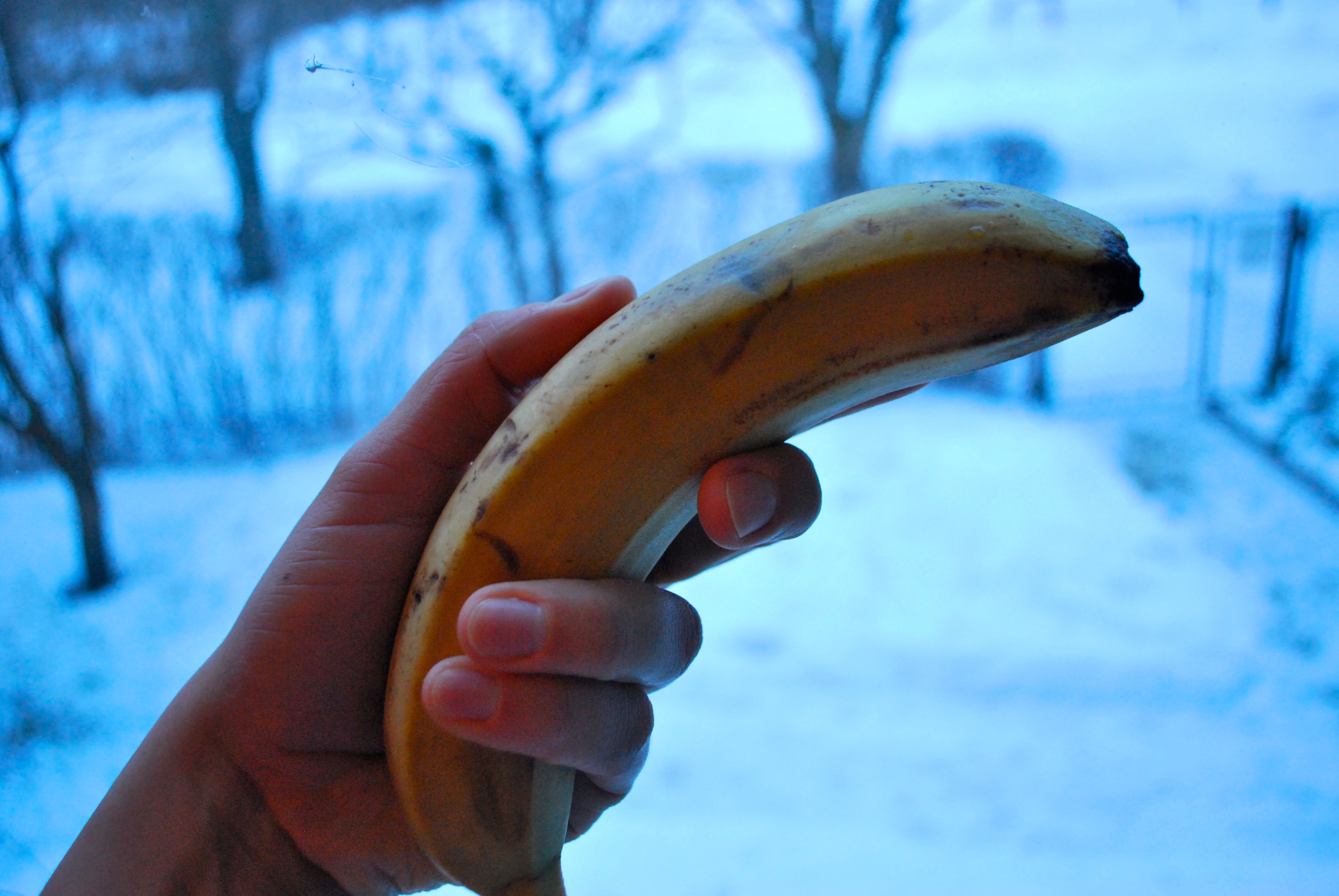 Vahepala või õhtune näks: banaan, tudengisegust veidi pähkleid ja rosinaid