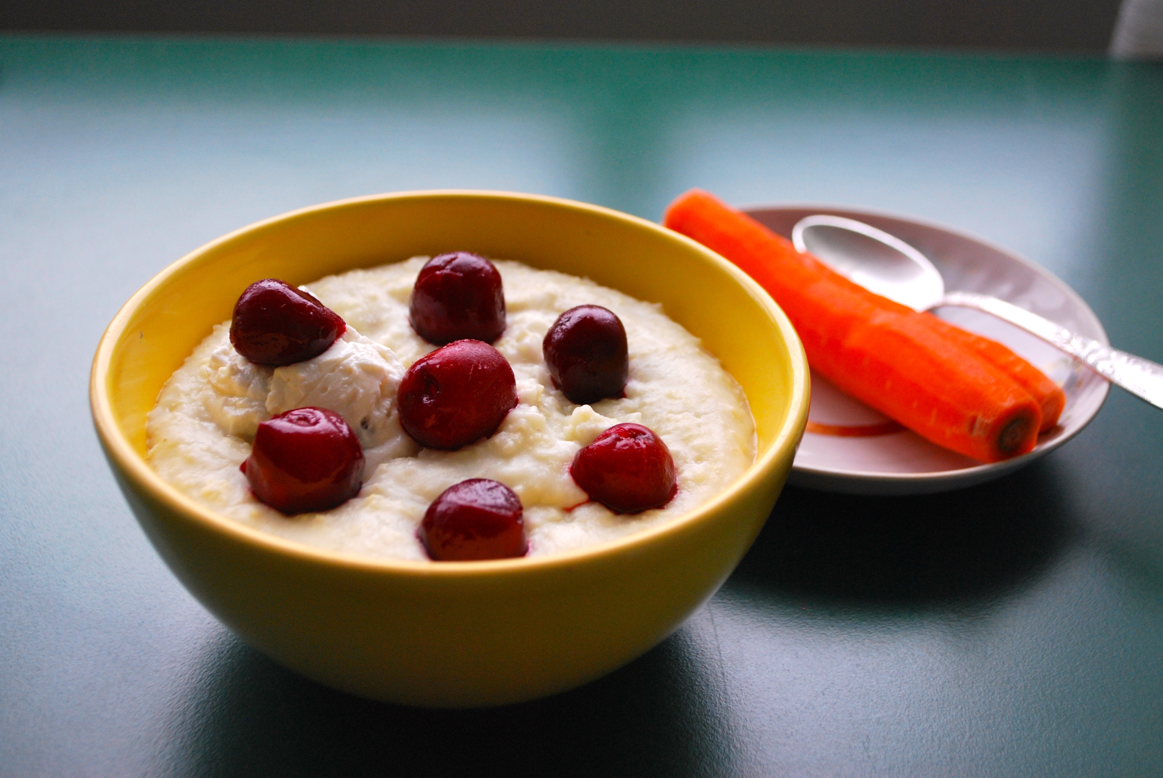 - 100 g maitsestamata kohupiimakreemi + mõned kirsid + stevia + natuke piima