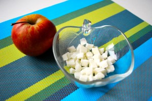 Pärast trenni: pool topsi jogurtiga kodujuustu 1tl maapähklivõi ja 2tl õunamoosiga + õun