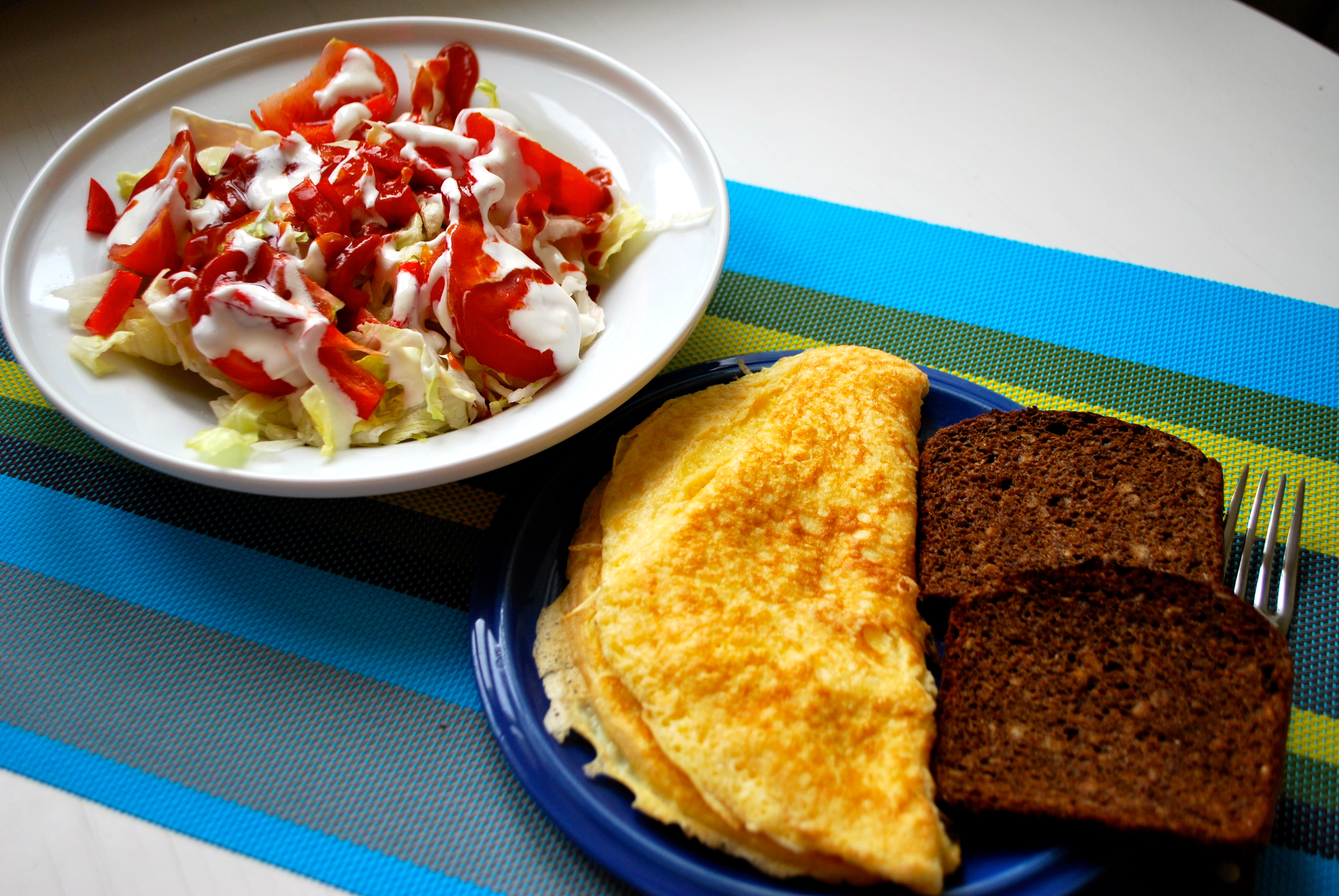 - omlett: 3 muna, 1 spl keefirit, sool ja natuke soodat, oliiviõli