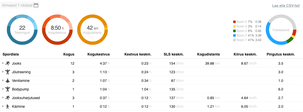 Spordiarst ei andnud lisasoovitusi… Ilmselt lihtsalt see kevade venimine ja üldine (kooli)väsimus mõjuvad ka. Koormus on tõesti suur, aga ma ei oska seda kuskilt otsast vähendama ka hakata.