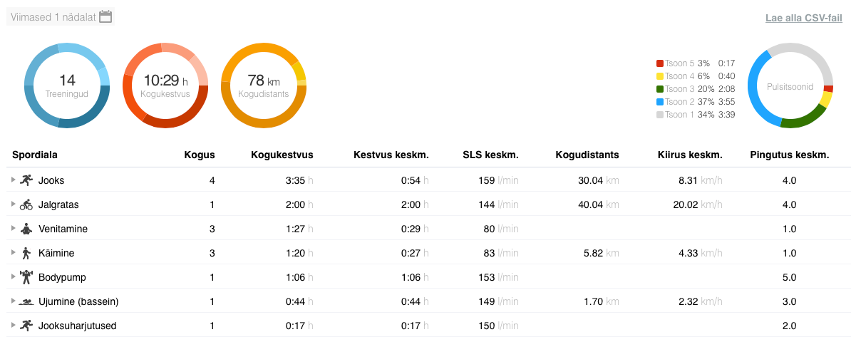 Trenne ei oskagi kuidagi ühisnimetaja alla kokku võtta. 3 jooksutrenni (pikk, lühike, lõigud), 1 BodyPump, 1 rattasõit ja 1 ujumine. Rahulikum nädal oli, mis seal ikka, samas kõik vajalikud asjad sai vist tehtud. Sääred oleks justkui normaalsed, aga Achilleused on kuidagi “kinni”, kanged ja imelikud. Loodetavasti need nädala pärast mingeid probleeme ei põhjusta.