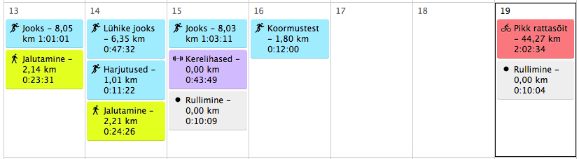 Jooksukilomeetrid kärbusid dramaatiliselt kokku, aga ma ei saa neid numbreid praegu lugeda. Maratonikava ma ju enam jälgida ei tohi. 25 km on niigi hästi saadud. Loeb ainult puhkus, pulsi normaalseks ja tervise korda saamine. Emotsionaalselt käisin ikka täitsa augu põhjas korraks ära, kui ema pärast koormustesti postituse lugemist helistas ja lohutama hakkas. Võib-olla oligi vaja koos pisaratega kõik välja saada, et uus algus teha? Võib-olla.