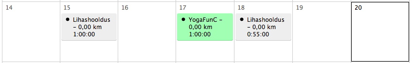 Neljapäeval seadsin jalad kell 7 hommikul YogaFunCi. Ma polnud seal tunnis pool aastat käinud, aga kõik oli ikka mõnusalt vanaviisi: sama rahvas, enamus meie jooksugrupist. Treener Indrek jooksis ise ka pühapäeval maratoni ning ilmselt teadis, mida ma tunnen mõnede asendite ajal. 😀 Esireied ja parem puusapainutaja oli ‘kinni’, aga üldiselt tundsin end täiesti normaalselt. Vigastatud tallaga olin ettevaatlik. Küll see neljapäevane hommikune jooga ikka mõnus. Selline sisemine rahu tuleb seal tunnis sisse. 🙂