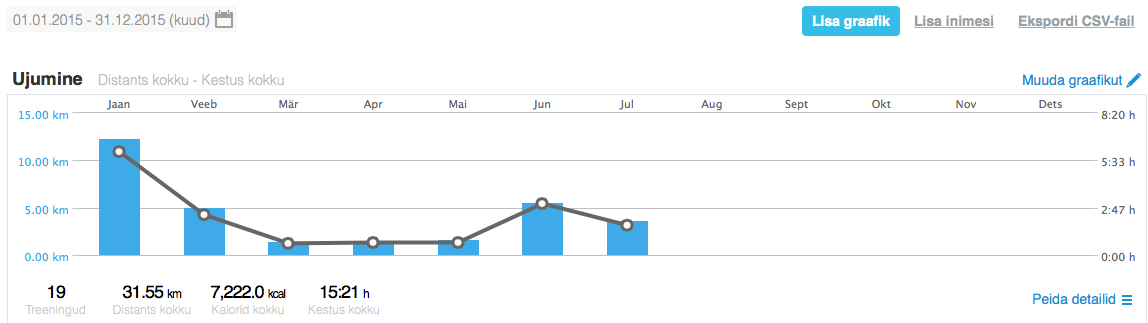 - Sportlyzeri treeningpäevikus logitud trennitunde: 426 h (2014: 537 h)