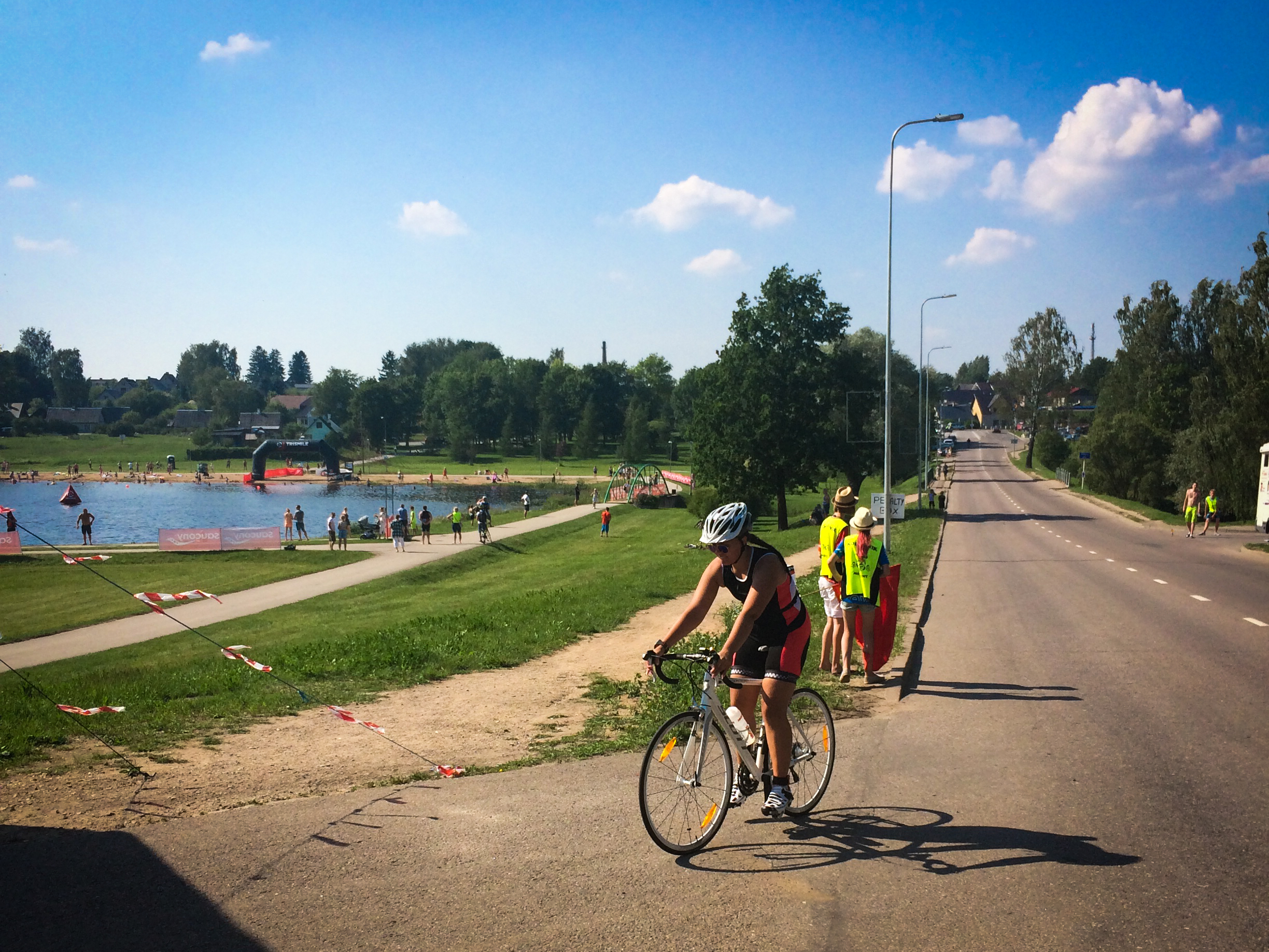 Alustame algusest. Valka jõudsime kella 14 paiku, kui stardini oli veel 2 tundi aega. Sai kõiki toimetusi rahulikult ajada. Härra Jooksja oli minuga kaasas, aitas mu asju tassida, pilte teha ja aega veeta. Päike kõrvetas, palav oli, isegi kõndimine oli vaevaline, rääkimata siis veel sportimisest. Kõik teised triatleedid tundusid nii professionaalsed ja asjalikud, mina olin seal nagu totaalne simulant. 😀