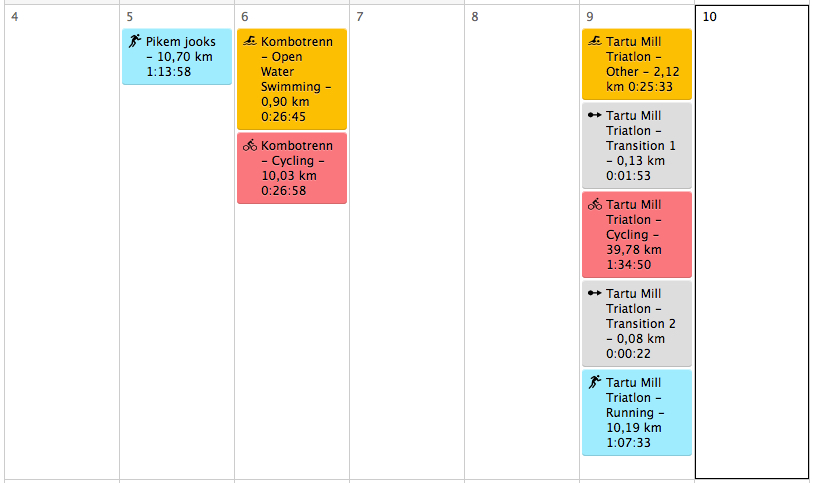 Teisipäev: pikem jooks. Kuna ma polnud ammu 10 km jutti jooksnud (viimati 3 nädalat tagasi poolmaratonil), siis tahtsin veel absoluutselt viimast päeva kasutada ja natuke pikemalt joosta. Ma arvan, et see trenn tuli triatlonil kasuks küll. Täitsa meeldiv jooks oli, meelestatus oli õige ja enesetunne ka päris hea. 6:55 min/km ja 159 bpm.