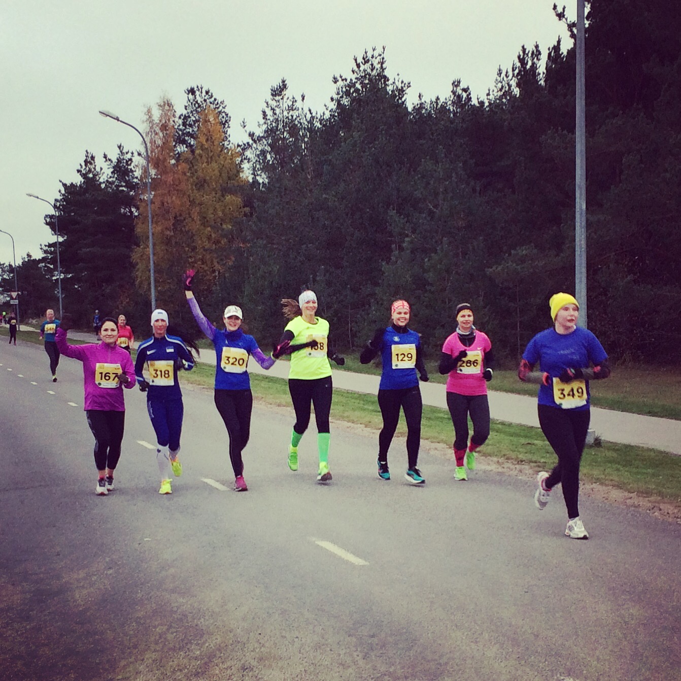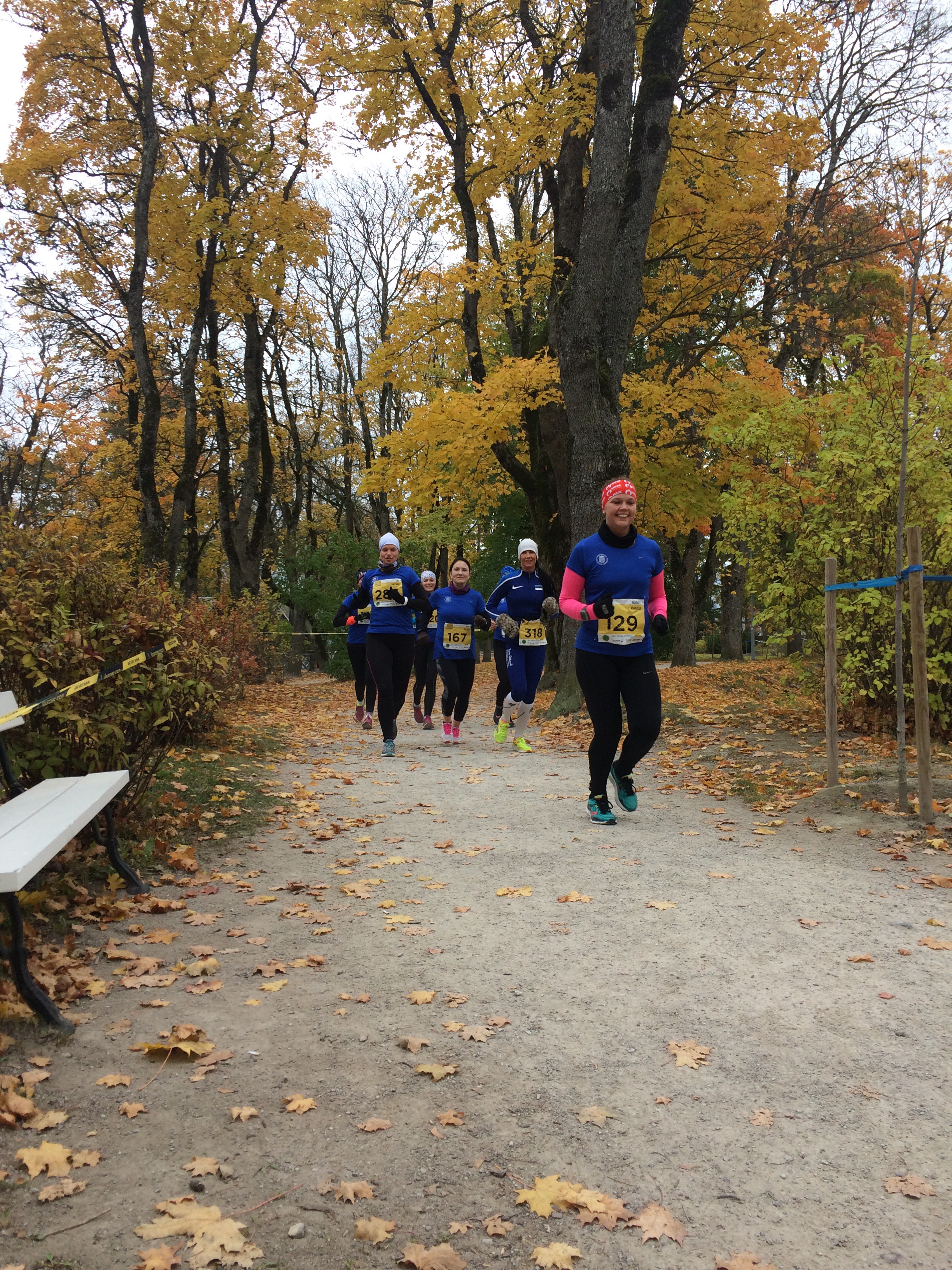 Kuskil 14 km kandis hakkas kopp ette saama. Vähemalt päike piilus pilve tagant ja soojendas aeg-ajalt. Mets oli ka täitsa armas. See oli ka muidugi lahe, kuidas meile kaasa elati ja igalt poolt tuli ägedaid kommentaare, kuidas me oleme tore seltskond, vaade (meile) on hea ja fotograafidele meeldisime ka. Mis nii viga joosta. 😉