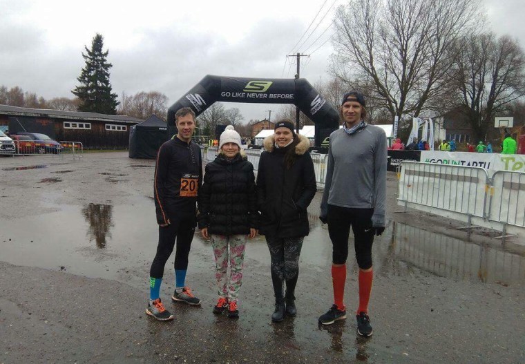 Kui Kvissentali jõudsime, oli kell juba 11 ja stardini jäänud tund aega. Võtsime numbrid välja, panime võistlusriided selga ja juba oli kell liiga palju saanud. TYSKi rahval oli juba soojendusjooks tehtud, kui mina alles sellele suundusin. 20 minutist sörgist ja korralikust jooksuharjutuste seeriast, mida Treener teha soovitas, ei tulnud midagi välja. Jooksin kiirelt 10 minutit, tegin paar sääre- ja põlvetõstet, koos teistega paar lahtijooksu ja oligi kõik. Mingit viitsimist ei olnud kah. 5 kraadi, külm tuul ja veel külmem vihm… Võeh. Vastik. Kiire vetsupeatus, andsin pusa pakihoidu ja oligi aeg starti minna. Head sõnad Treenerilt kaasa ja minek!
