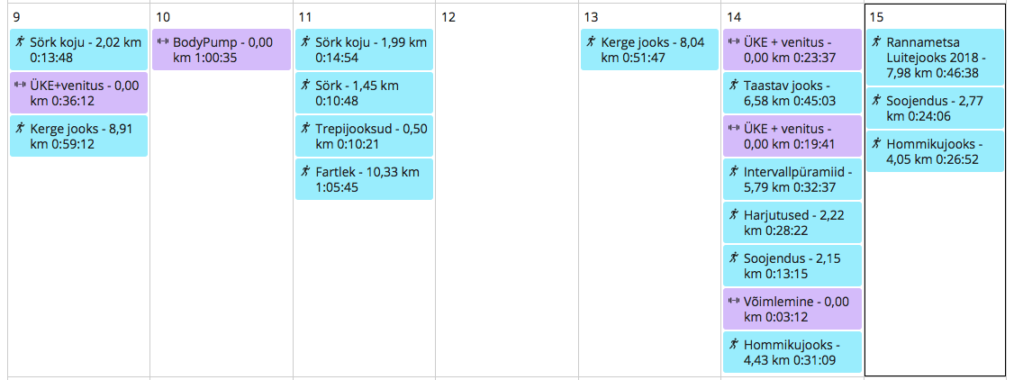 Väga mahukas nädal. Järgmisel nädalal on plaanis natuke puhata, natuke joosta ja remonti oleks ka vaja teha. Lisaks kõigele on mul tööl aprillikuu kõige kiirem ja hullem nädal. Seega eesmärk on lihtsalt ellu jääda ja natuke trenni ka teha. Eks näis, kuidas läheb!