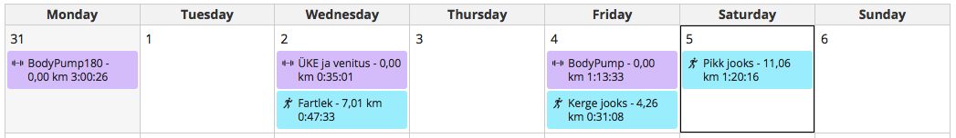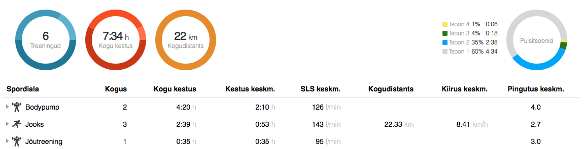 Järgmisel nädalal on plaanis 4 trennipäeva – 1 Pump, 2 JJV-d ja 1 pikk jooks – ja 3 puhkepäeva, kuna reede õhtul olen hoopiski üht sündmust pildistamas. Sellel nädalavahetusel võtsin endale aega, et lihtsalt olla ja puhata – imeline tunne! Mõelda vaid, et niimoodi normaalsed inimesed elavadki. 😅