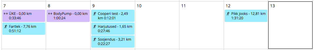 Järgmisel nädalal on plaanis ikka 2 JJV-d, 2 BodyPumpi, üks pikk jooks ja kaks puhkepäeva. Loomulikult ka omajagu tööd, natuke pildistamist ja remonti. Et igav ei oleks. 😅