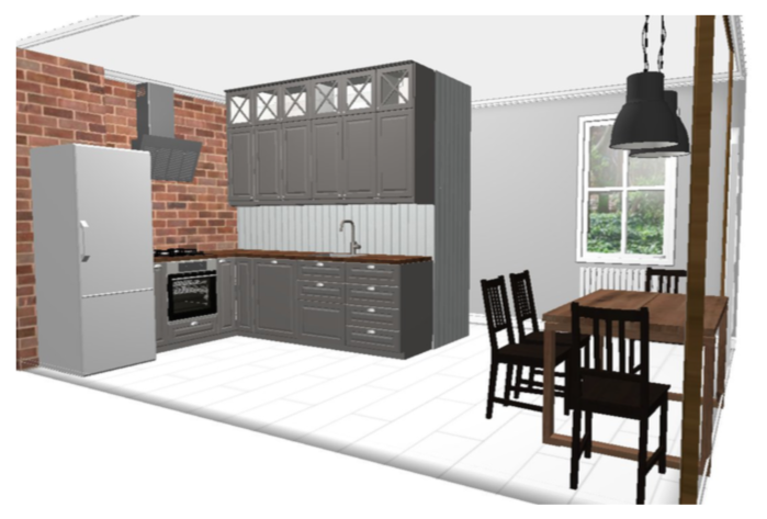 Köögi planeerimiseks kasutasin IKEA Kitchen Planner tarkvara, kuna meie köök tuleb justnimelt Ikeast. Suurima tõenäosusega valime Bodbyn hallid uksed ja Maximera vaikselt sulgevad sahtlid. Tööpinna tellime mõnest puiduga tegelevast ettevõttest ja viimistleme ise Osmo õlivahadega tumepruuniks. Elektroonika osas pole veel otsustanud, kas ostame selle samuti Ikeast või kuskilt mujalt.