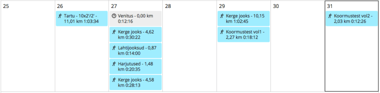 Kolmapäev: Jooks Jõud Venitus. Kuna eelmine päev oli fartlek, siis kolmapäeval teistega lõike ei jooksnud. Tegime kerge soojenduse (6:10 min/km, 133 bpm), korraliku bloki jooksuharjutusi ja 5 lahtijooksu (kell näitas 60 m peal kiireimaks tempoks 1:54 min/km), et reedeks natuke kiiremat sammu meelde tuletada. Siis jooksime Britiga veel peale (6:34 min/km, 139 bpm) – pärast saime Treenerilt pahandada, et salaja liiga palju jooksime 😂 –, natuke rullisime ja oligi kojuminek. Selline kerge trenn.