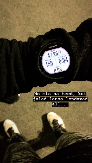 Kolmapäev: kerge jooks. Või noh, mis kerge ta ikka oli. 😐 Ilm oli õudselt niiske, külm ja tuuline ning jalad justkui tinast: rasked ja väsinud. Tegin oma tunnikese ära (9,65 km, 6:18 min/km, 151 bpm) ja aitas kah.