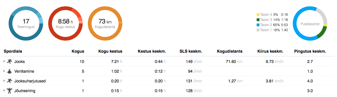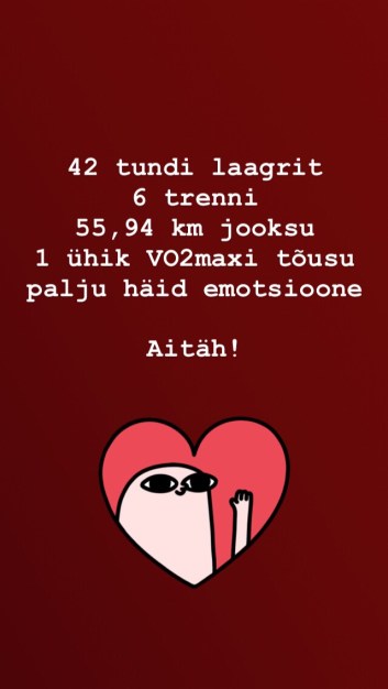 Selgelt kevadhooaja mahukaim nädal sai lukku. Järgmise nädala plaan on veel natuke lahti. Eks vaatab enesetunde järgi ja pean Treeneriga ka nõu. Põhiline on tööl ellu jääda. Ja et härra Jooksja selle raske remondinädala üle elaks.