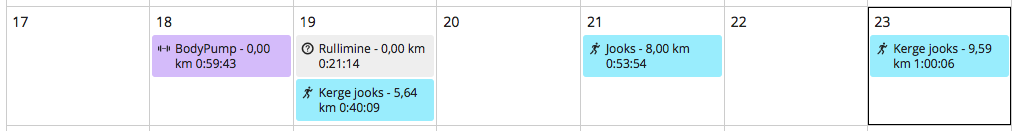 Vaikselt sai rajale tagasi tuldud ja ma loodan, et järgmisel nädalal jõuab esimese 4-nädalase treeningtsükliga algust teha. Üldiselt oleks vaja millalgi kalender ette võtta, võistlused sisse kanda ja pikad jooksud nädalalõppudesse paika panna, ülejäänu tuleb jooksvalt. Berliini maratonini on jäänud vähem kui 100 päeva, minu vorm on viimase mõne nädalaga korralikult auku kukkunud ja kuidagi peab hakkama maratoniks treenimist oma elu ajakavasse mahutama. Läheb huvitavaks, ütleme nii. 🙄