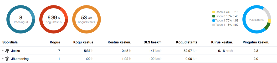 Selline natuke kole nädal siis seekord. 😕 Hakkaski kõik juba liiga hästi minema, eksole… Sel nädalal sai end veel Peetri jooksule ka kirja pandud, aga kuidas haigus mu järgmise laupäeva jooksmist mõjutab, ei oska veel öelda.