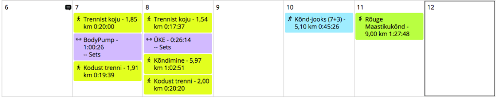 Esmaspäev: trennivaba. Kerge kehv enesetunne jätkus ja mingit liikumist seega ei olnud. Bummer.