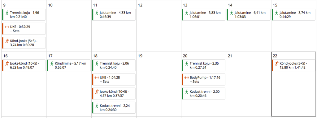 Kokkuvõtvat pilti ma ei saa panna, sest – üllatus-üllatus! – Sportlyzer jälle ei tööta…