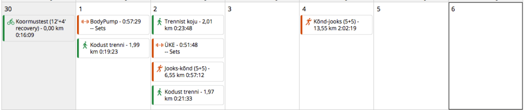 Esmaspäev: koormustest. Pärast korralikku pingutust ei hakanud õhtul enam trenni minema.