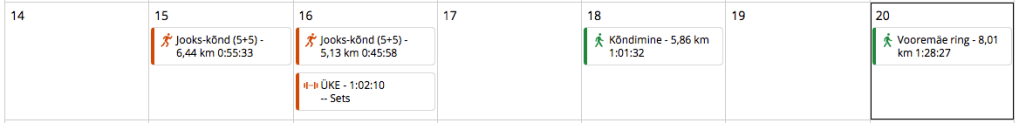 Esimene nädal, kui spordiklubisse rühmatrenni enam ei saanud. Tegin kergema nädala, kuna koormus on viimased nädalad päris suur olnud ja tundsin, et on aeg natuke hoogu maha võtta.