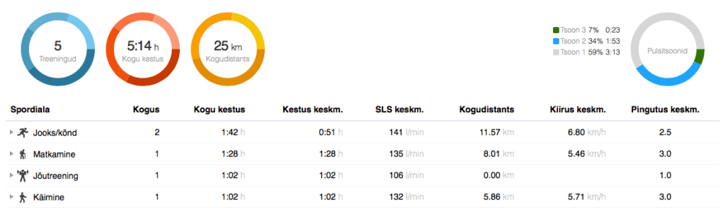 Ilmselt tuleb järgmine nädal samuti väga väheintensiivne, maksimaalselt 3 trennipäeva. Pühade ajal tahaks natuke rahulikumalt võtta. Kui see väss ja kõrgem puhkeolekupulss järele ei anna, siis tulebki rohkem puhata.