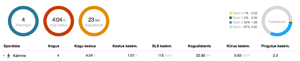 Reede: kõndimine. Reedel sain oma kõndimised tehtud polikliiniku suunas kõndides. Oleks ju võinud vabalt bussiga käia, aga läksin ikkagi jala ja üllatuslikult sain lausa 5 kilomeetrit niimoodi kokku. 5,1 km, 10:39 min/km, 117 l/min