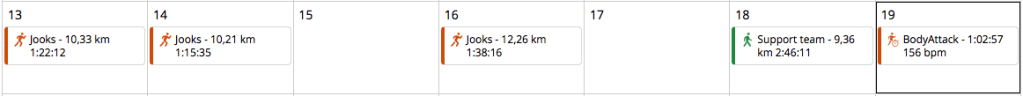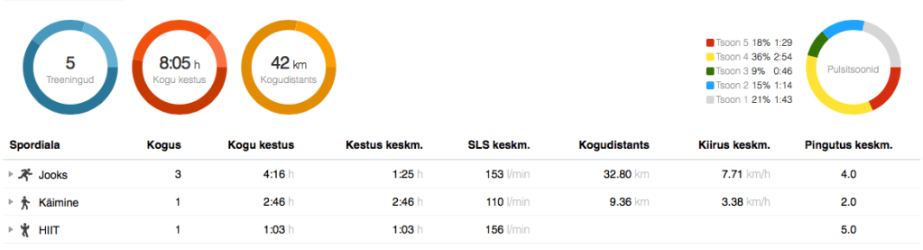 Oli iseseisva trenni nädal, sest spordiklubi pääse oli veel pausil ja ausalt öeldes oli töönädal nii hullumeelsete päevadega täidetud, et hea oligi, kui kuskile kellapealt minema ei pidanud. Pühapäeval sai õnneks juba TYSKi naasta.