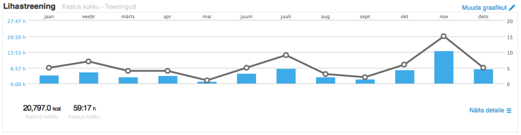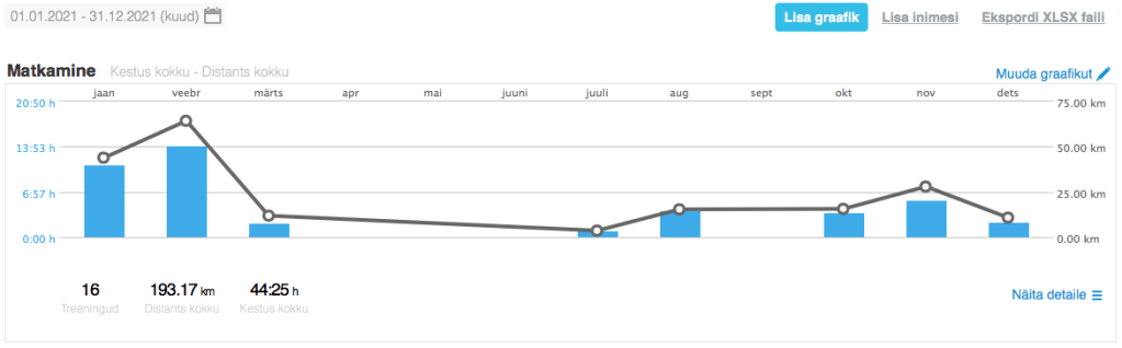 Mina liidaksin siia juurde veel ka BodyAttacki – minu parima uue trenniavastuse 2021. aastal –, siis sai jõutrenni tehtud peaaegu 67 tundi. See on juba täiesti tavaline korralikult mahuka trenniaasta jõutrennide arv. Eelmisest aastast oma 15 tundi enam. Pole paha.