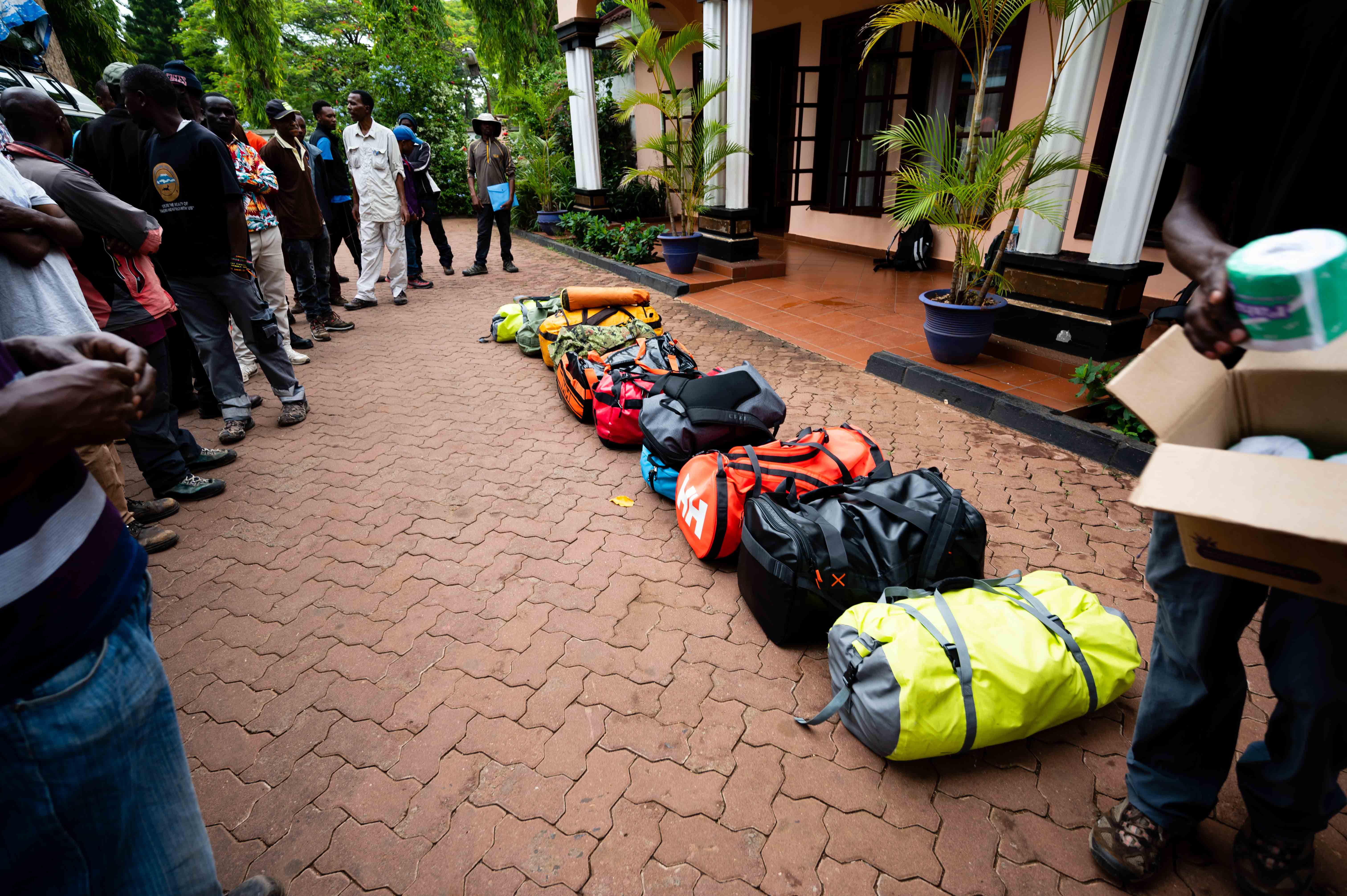 Viimaks kauaoodatud Kili! Safarijärgsel õhtul sai suurest spordikotist kõik Kili mõistes ebavajalik välja pakitud ja matkavarustus Kiliks valmis pandud. Vetthülgava spordikoti sees kasutasin suurt prügikotti, et tagada täielik veekindlus. Aafrikale omasel moel me kokkulepitud kella 10 ajal hotellist muidugi minema ei saanud, läks tunnike kauem. Saabus ca 40 inimest, kes meie 10-liikmelist punti mäel abistama hakkasid: giidid, abigiidid, kokad, köögistaff ja loomulikult porterid ehk kandjad. Kilimanjarot ei ole rahvuspargi reeglite järgi lubatud ronida ilma pakikandjateta. Maksimaalne lubatud varustuse kaal inimene kohta tema spordikotis, kuhu läheb ka magamiskott ja mida kannab porter, on 15 kilogrammi. Tundub palju, kuid arvestades, et mäel tuleb olla valmis temperatuurideks +30 kuni –25 ja päikesest lumesajuni, tuleb varustust hoolikalt valida. Lisaks on igaks päevaks hädapärane matkajal endal seljakotiga kaasas. Minu seljakoti kaal koos igapäevaselt vajaliku 3 liitri vee, vihmariiete, ühe soojema kihi, kaamera ja muu hädapärasega oli 10 kilogrammi kanti. Õnneks mu Osprey seljakott tegi selle kaalu kandmise päris kergeks. 🙂